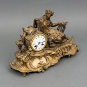Zamak pendule met muze, tweede helft 19e eeuw -barst in geëmailleerde wijzerplaat-, 29 x 46 x 15 cm