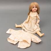 Pop met biscuit hoofd en papier-maché ledematen -defecten-, 46 cm