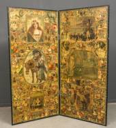 Tweeslags kamerscherm met gelithografeerde afbeeldingen, circa 1900 -defecten-, 176 x 168 cm