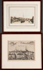Kleurenlitho: Binnen-Amstel, Amsterdam, daarbij: gravure: Enkhuizen vanaf het water