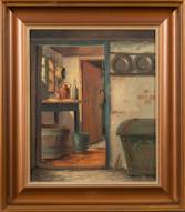 Borge Ball (1906-1979), keukeninterieur, olieverf op doek, gesigneerd, 30 x 25 cm