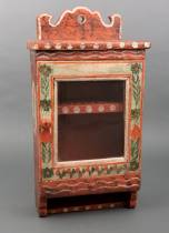 Beschilderd houten pijpenkastje met beglaasd deurtje, Hindeloopen-stijl, 65 x 33 x 17 cm