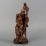 Chinees houten beeld: Shou Xing, midden 20e eeuw -droogtebarstje-, 31,5 cm