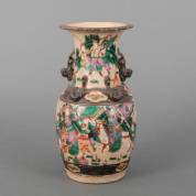 Gecraqueleerde Chinese porseleinen vaas met polychrome oorlogsscène, voorzien van zegelmerk, Nanking, 19e eeuw, 33 x Ø 17 cm
