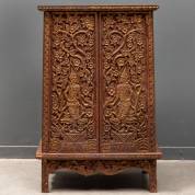 Klein formaat verguld houten manuscriptkabinet met rijk gestoken decor, Thailand, circa 1900, 81 x 53 x 40 cm