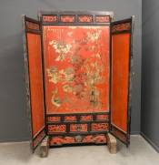 Chinees houten afsluitbaar kamerscherm, het interieur met roodgelakte deuren, centraal een fijne vergulde beschildering van feniksen en zwaluwen onder pioenrozen en bamboe, gedateerd in de derde maand van een renshen-jaar, vermoedelijk 1872, in de kalligrafie opgedragen aan de neef van de gever ter gelegenheid van diens 70e verjaardag, 231 x 125 x 63 , 199 x 60 cm