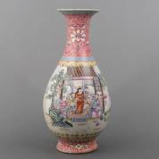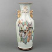 Chinees porseleinen famille rose vaas, decor: spelende kinderen in een tuin, modern -onderrand met slijtage-, 42 x Ø 20 cm