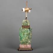 Groen en roze kwarts lampvoet met rozendecor, China, 58,5 x 18,5 x 12 cm