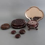 Zes Chinese houten basementen, en verzilverd dienblad, 7 x Ø 30 cm