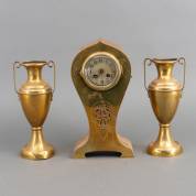 Driedelig messing pendulestel, circa 1900 -vazen gedeukt-, 37 x 19 x 10 cm