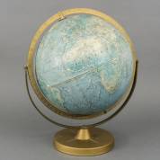 Bureauglobe met reliëf, op goudkleurig metalen basement, uitvoering Scan-Globe Danemark, 20e eeuw -lichte gebruikssporen-, 41 cm