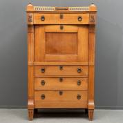 Mahoniegefineerde klepsecretaire met dubbelgebogen onderkast, Hollands, 20e eeuw -defecten-, 105 x 100 x 54 cm