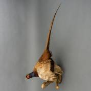 Geprepareerde fazantenhaan, op houten wandconsole vervaardigd uit een tak, 87 x 38 x 37 cm