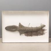 Tirza Verrips (1945), abstract object, keramiek en hout, in vitrine, gesigneerd en gedateerd februari 1987, 83 x 123 x 12 cm