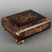 Lakwerk kaartdoos, het interieur met vier lege kaartdozen en negen aflegbakjes -defecten-, 11 x 30 x 27 cm