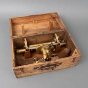 Messing waterpasinstrument met afneembare kijker en hoekmeter, uitvoering H. Morin, Paris, circa 1900, in kist, 44 x 22 x 25 cm