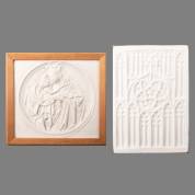 Gipsen tondo: Maria met kind, daarbij: gipsen afgietsel van gotisch traceerwerk, 41 x 44 en 44 x 31,5 cm