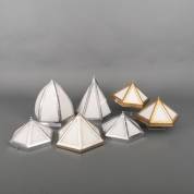 Zeven diverse hexagonale plafonnières -gebruikssporen, één schroefje ontbreekt, geen bedrading aanwezig-