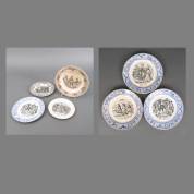 Zeven diverse aardewerk borden met decors van Napoleon