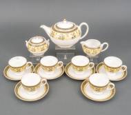 Zespersoons porseleinen theeservies, decor 'India', uitvoering Wedgwood, Engeland, 13 x Ø 15,5 cm