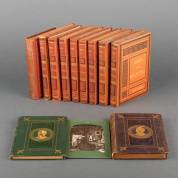Elf boeken: Multatuli. Ideeën. (Door den auteur herziene uitgaven). Amsterdam, 1872-1879. 7 delen; Idem, Minnebrieven. 5de oplage. 1871. Met uitslaande plaat 'Multatuli's Gebed van den Onwetende'; Enz. Daarbij: originele foto van A. Vlaanderen in zijn atelier werkend aan een affiche van de tentoonstelling Multatuli 1820-1920 (16,5 x 11,5 cm)