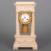 Albasten kolompendule met witgeëmailleerde wijzerplaat en gestoken decor -defecten-, 40 x 20 x 11,5 cm