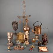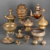 Divers Indonesisch messing, waaronder ghendi's en dekselpotten