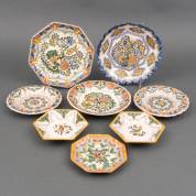 Acht diverse aardewerk wandbordjes met polychrome bloem- en vogeldecors, uitvoering Tichelaar, Makkum, Ø 25 cm