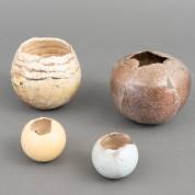 Ada Stel (1947), vier vrij gevormde raku keramiek vazen, gemerkt, Atelier Artisjok, Tjerkwerd, 12 x Ø 14 cm