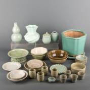 Divers celadon, waaronder vazen en kommetjes, 20e eeuw