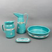 Turquoisegeëmailleerd lampetstel met gouden bies en bloemdecor -restauratie hoge schenkkan-, 40 cm