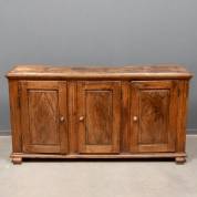 Eiken driedeurs kast op sloffen, de deurtjes met ruitmotief, 18e eeuw -vlekken-, 94 x 184 x 50 cm