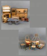 Diverse houten poppenmeubelen en attributen, eerste helft 20e eeuw
