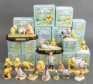 Verzameling keramische Winnie the Pooh-figuren, waarvan twee inclusief basement, alle met originele verpakkingsdoos, uitvoering Royal Doulton, Engeland, 13 cm