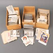 Katholieke iconografie - Ongeveer 2700 doods- bid- en devotieprentjes uit de jaren 1940-1970. Belgisch, Duits en Nederlands, traditionele en moderne ontwerpen. Unieke verzameling afkomstig uit een drukkerij (bevat veel doubletten). Daarbij: circa 450 heiligen-, devotie-, communieprentjes, prentjes voor priesterwijdingen, alle met gedrukte tekst, 1900-1980, 8 x 13 cm
