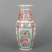 Chinees porseleinen vaas met famille rose vlinder- en bloemdecor, Kanton, 20e eeuw, 46 x 20 cm