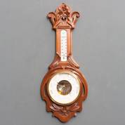 Barometer in mahonie kast met gestoken bladdecor, 20e eeuw, 71 x 26 cm