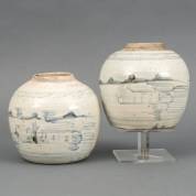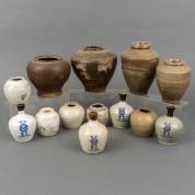 Diverse steengoed (gember)potten en Japanse shoyukruikjes, 20 cm