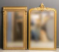 Twee gefacetteerde spiegels in goudgeschilderde lijst, 150 x 90 cm