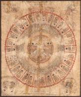 Birmese schildering op zijde: mandala met centraal zittende Shakyamuni boeddha, omgeven door teksten, acolieten en apsara -veel defecten-, 54 x 45 cm