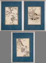 Kôno Bairei (1844-1895), drie pagina's uit een Japanse e-hon: vogels, 'Bairei hyakuchô gafu zokuhen', volume 1: pagina's 19 en 29, en volume 2: pagina 18, alle 1884, 20,5 x 14,5 cm