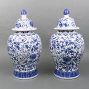 Paar grote balustervormige porseleinen dekselvazen met blauw-wit floraal decor, China, modern, 60 x Ø 30 cm