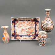 Japans porseleinen Imari dienblad met decor van kirin, en drie diverse Japans porseleinen Imari vazen, 19e eeuw, 23,5 cm