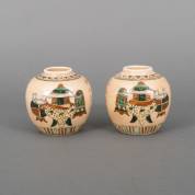 Paar Chinees porseleinen gemberpotten: decor: wierookbranders en karakters, Nanking, 19e eeuw, 13 x Ø 13 cm