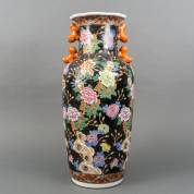 Chinees porseleinen vaas met polychroom bloemdecor op zwart fond, gemerkt, 20e eeuw, 63 cm