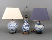 Drie Chinees porseleinen lampvoeten met blauw-wit decor, 20e eeuw, 57 cm