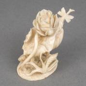 Chinese ivoren snuiffles: lotus in diverse stadia afgebeeld, de knop van het lepeltje in de vorm van een libelle, circa 1900 -chipje van de staart van de libelle-, 6,5 cm