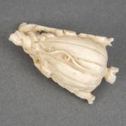 Klein Chinees ivoren snuifflesje: vrucht met bladeren, circa 1900 -miniem chipje van de punt van het lepeltje-, 5 cm