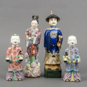 Vier polychroom beschilderde Chinees porseleinen figuren, modern, 29 cm