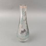 Dikwandige glazen vaas met geëtst en gekleurd decor: kraanvogels onder een pijnboom, gemerkt 'Jiaqing Yulan Zhi Bao', 20e eeuw, 34 x Ø 12 cm